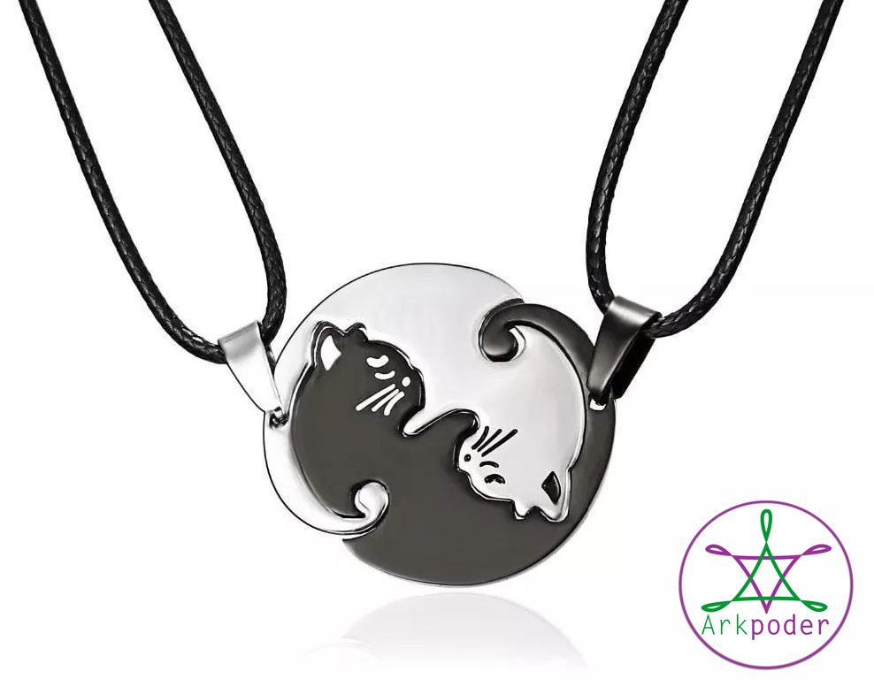 Lindo colar duplo, yin yang na forma de gatos.
